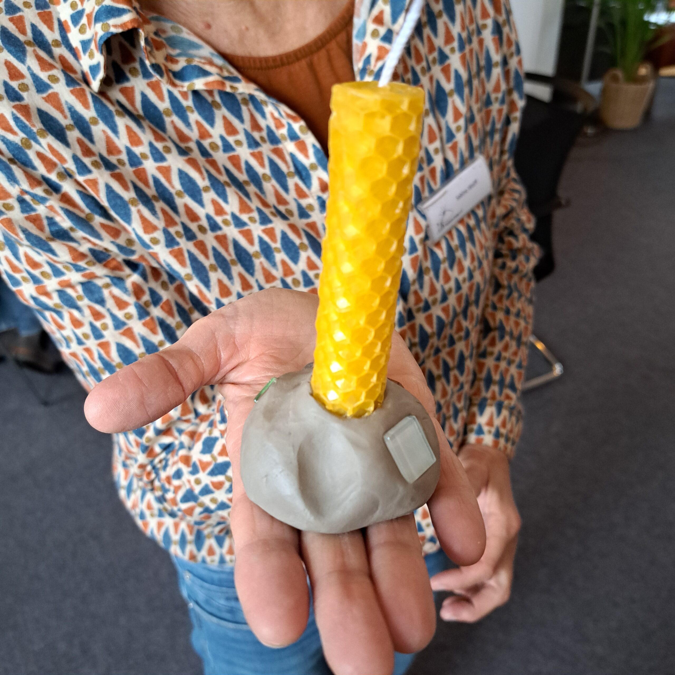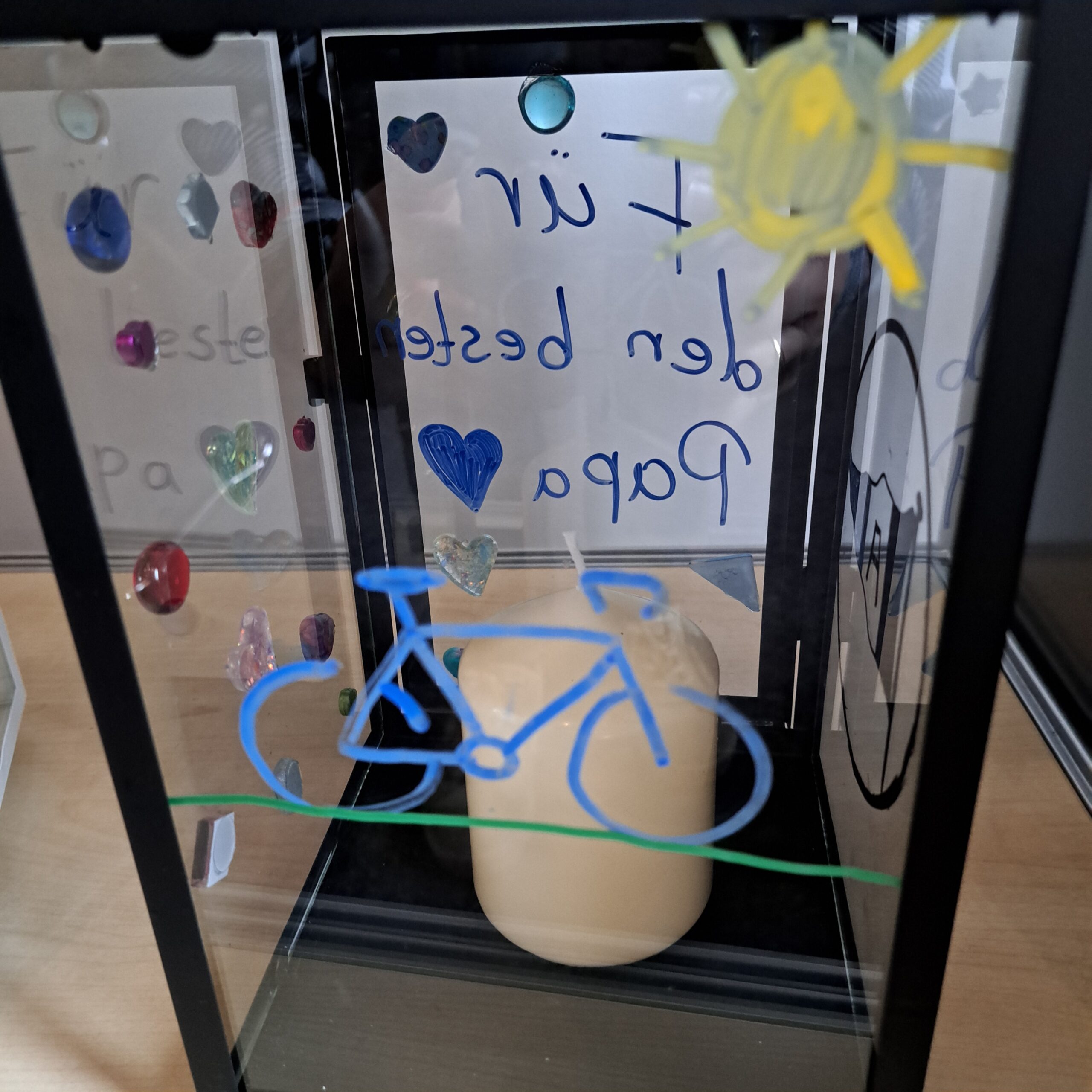 Besonders bewegend war das Bemalen und Verzieren von Laternen. Mit Glasperlen, Farben und liebevollen Details entstanden kleine Kunstwerke. Eine Laterne durfte jede Familie mit nach Hause nehmen, eine weitere konnten sie für das Grab gestalten. Eine Familie malte die Hobbys und Interessen des verstorbenen Vaters auf ihre Laterne – ein berührendes Zeichen dafür, dass Erinnerungen lebendig bleiben. Auch Kerzen aus Bienenwachs wurden mit Wünschen und Gedanken gefüllt. Manche Kinder bastelten kleine Figuren aus Knete, andere gestalteten Kerzen, die wie kleine Botschaften des Herzens wirkten.
